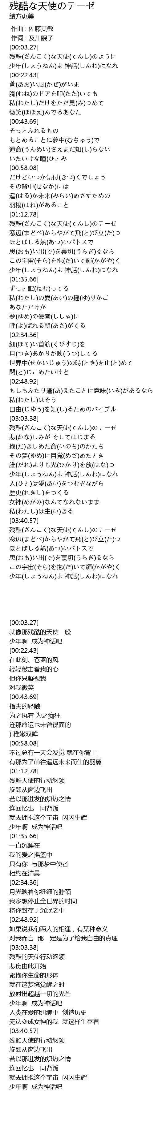 残酷な天使のテーゼ 歌词 歌词网