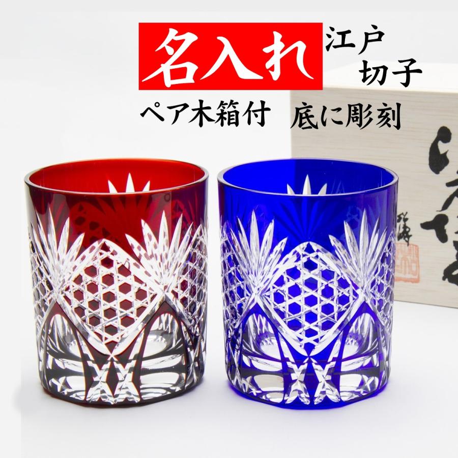 名入れ江戸切子グラス カガミクリスタルロックグラス2652赤青ペアセット 名前入りグラス還暦祝卒団記念品先生へのプレゼント 名入れギフトと表札 アトリエkana プレゼント ギフトのギフトモール