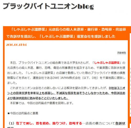 殺人未遂罪 暴行 恐喝 しゃぶしゃぶ温野菜 元店長らに対しブラックバイトユニオンが告訴状を提出 Ameba News アメーバニュース