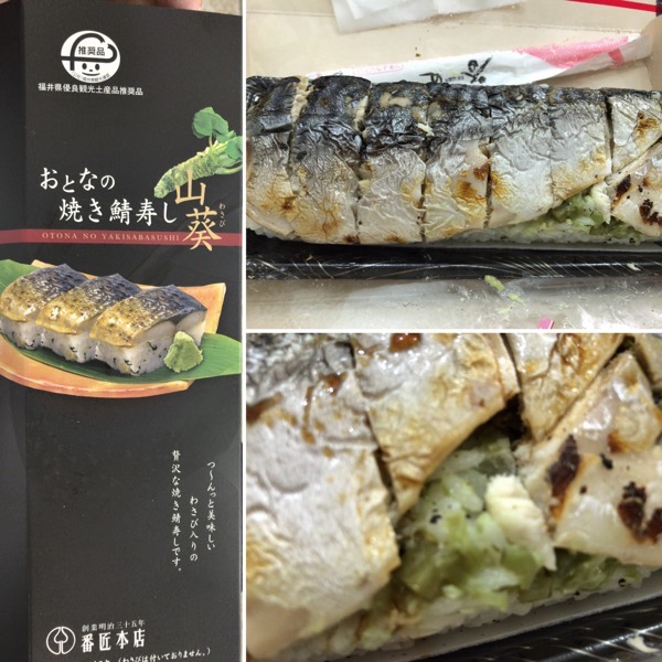 都内から京都での夕食 東京駅で買った駅弁 おとなの焼き鯖寿し 山葵 壊れた赤のハラペコ日記